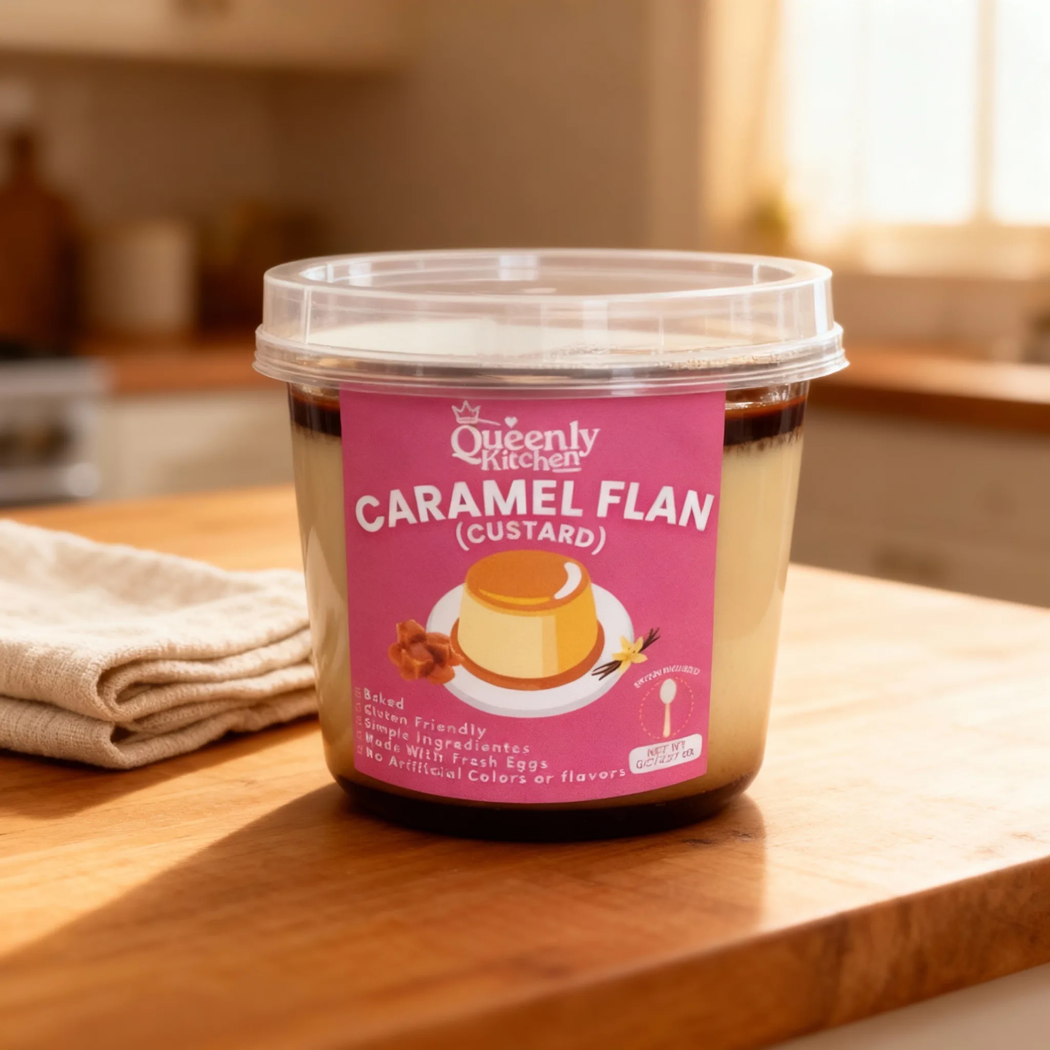 Every spoonful of Queenly Kitchen Flan melts in your mouth. It's creamy, silky, and kissed with golden caramel that dances on your tongue.